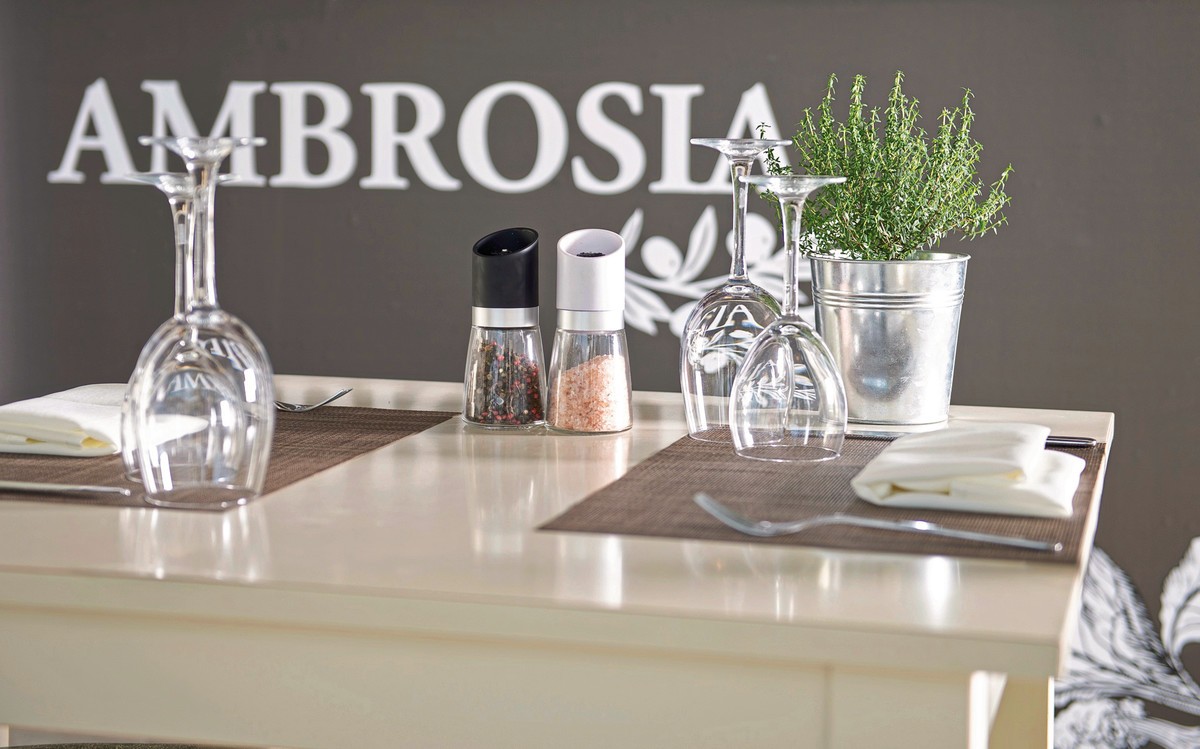 Dine Out im hoteleigenen Strandrestaurant "Mare Nostra" (200 m vom Hotel entfernt), das griechische und mediterrane Fusionsküche anbietet. Das Dine Out ist für Halbpensionsgäste einmalig bei einem mind. 5-tägigen Aufenthalt möglich (mit Voranmeldung, nach Verfügbarkeit)