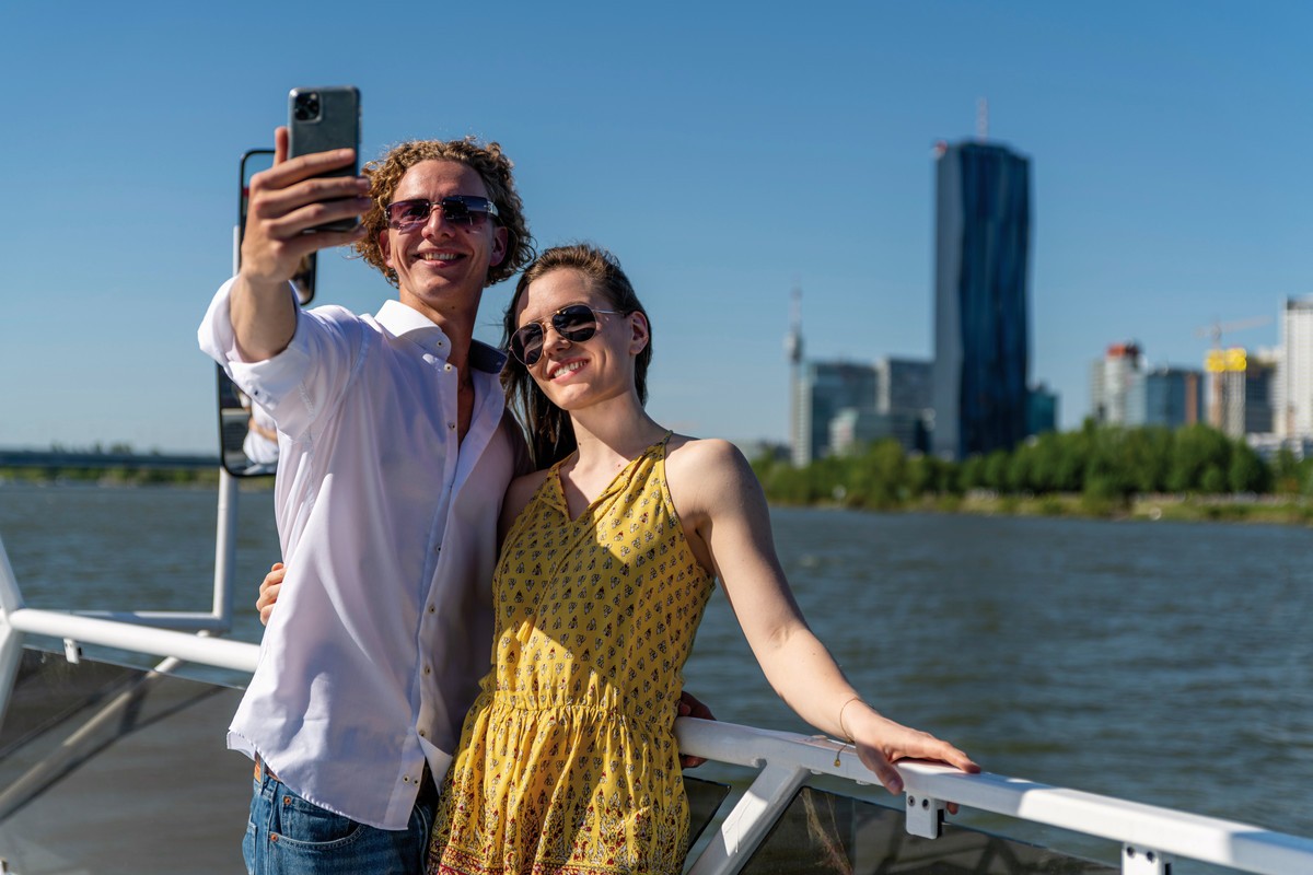 Die Schifffahrt beginnt an der Schiffsstation Wien/Reichsbrücke und führt stromabwärts entlang der beeindruckenden Skyline der Donauplatte. Schon kurz nach dem Ablegen bieten sich spektakuläre Ausblicke auf einige der markantesten Bauwerke der Stadt: den DC Tower, das höchste Gebäude Wiens, den Donauturm, der mit seinen 252 Metern das Stadtbild prägt, sowie den Millennium Tower, der als eines der Wahrzeichen des modernen Wiens gilt.