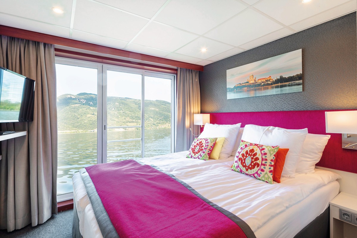 In den Kabinen auf dem Schiller- und Goethedeck genießen Sie dank bodentiefen Panoramafenstern (franz. Balkon) nicht nur die Aussicht, sondern auch den hereinwehenden Fahrtwind. Die Kabinen auf dem Grillparzerdeck verfügen über Fenster, die aufgrund der Wassernähe nicht geöffnet werden können.