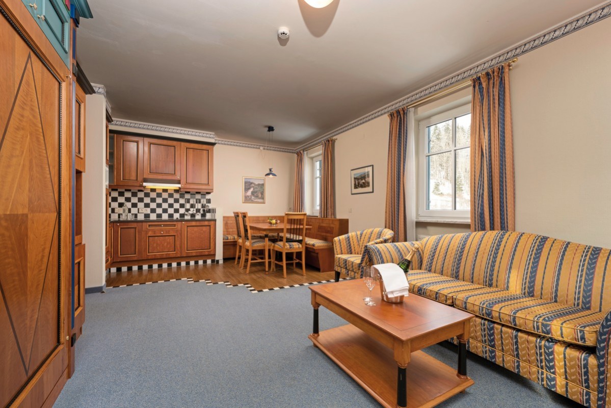 - 41-45 qm, Appartement, Bergblick, 1 separates Schlafzimmer, separater Wohnraum, Sitzecke, Dusche oder Badewanne, separates WC, Haartrockner, TV (Sat-TV, Flachbildschirm), Kochnische, Essecke, Balkon oder Terrasse, Handtuchwechsel (1 x wöchentlich), Endreinigung (kostenfrei)