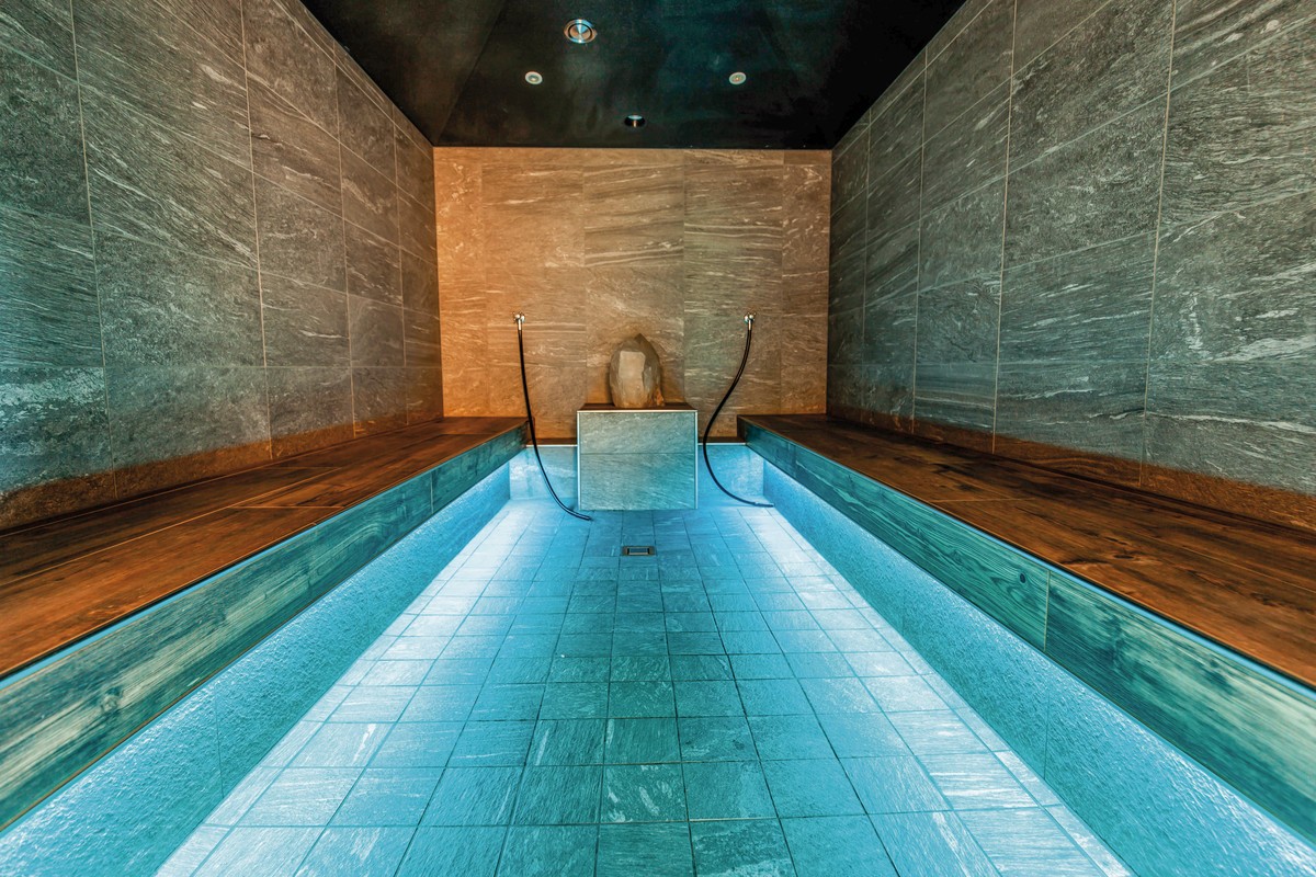Infinity-Pool, Badeteich, Hallenbad, Family Aquapark (mit Wasserrutsche), Bio-Sauna, Dampfbad, Eisbrunnen, Eisnebeldusche, Ruheraum, Massagen, kosmetische Anwendungen u.v.m.