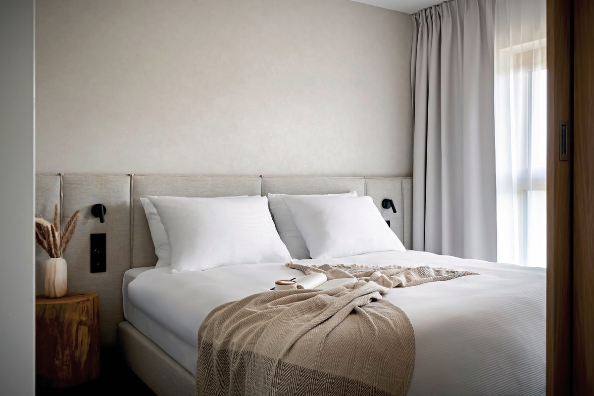 - ca. 33 qm, Appartement, separates Schlafzimmer, separater Wohnraum, Doppelbett, Sofabett, 1 Bad, Dusche, WC, Bademantel, Kosmetikset, Haartrockner, Klimaanlage, TV, WLAN, Kaffeemaschine, (inkl. Kapseln), Toaster, Kühlschrank, Balkon