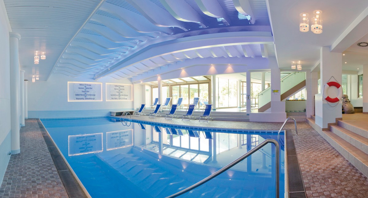 versch. Bäder und Saunen, Dampfbad, Whirlpool, Hallenbad, Solarium, Snackstation mit Obst, Tee & Wasser im Wellnessbereich