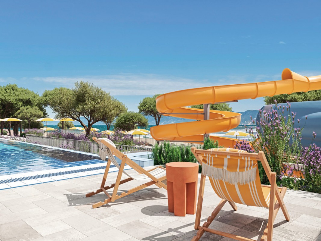 Vor der wunderschönen Kulisse der Küstenberge, umgeben vom Grün der Pinien, das Blau des Meeres im Blick, den Strand vor der Tür bietet das Resort großartige Freizeitaktivitäten für Groß und Klein.