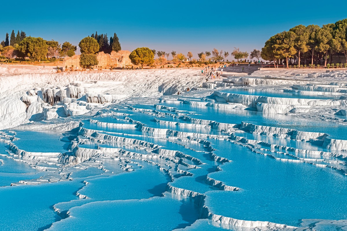 Nach dem Frühstück geht es Los! Für den heutigen Tag steht eine landschaftlich reizvolle Fahrt durch die Taurus-Gebirge an und gegen Nachmittag erreichen Sie Pamukkale. Pamukklale ist als UNESCO Natur- und Kulturgut gelistet. Nach einer Fotopause erreichen Sie das Thermal Hotel.