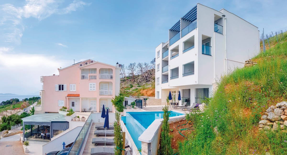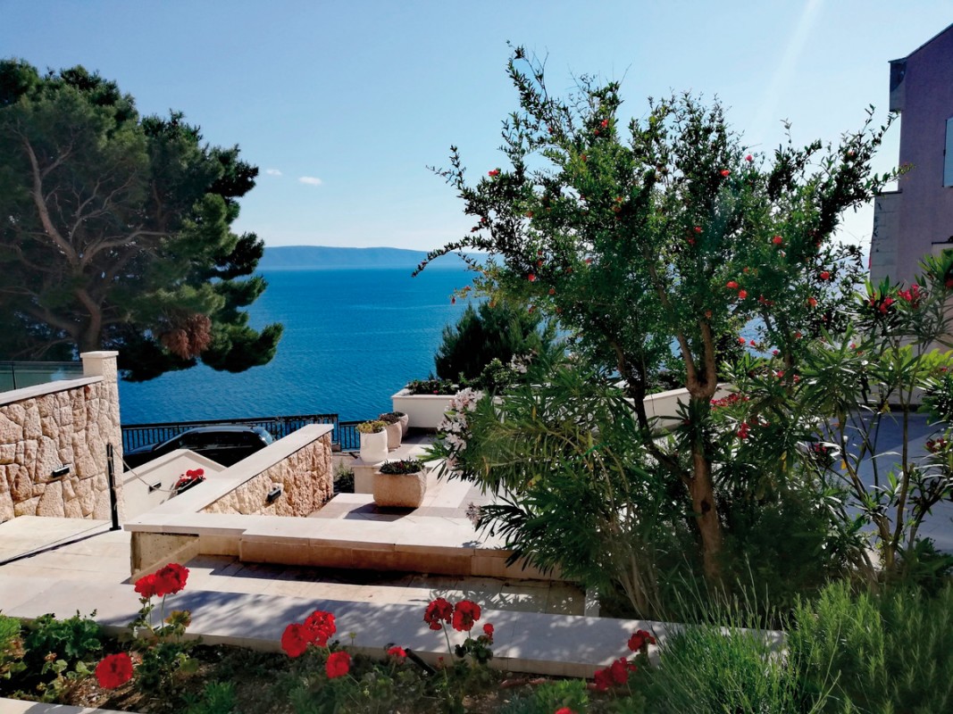 Ruhig, ca. 30 m vom Meer entfernt. Das 2.500 Seelendorf Podgora begeistert mit seinen malerischen Stränden und dem azurblauen Meer, der schönen Uferpromenade und dem hübschen Hafen. Am Hügel oberhalb der Stadt erhebt sich das Denkmal Galebova Krila und im Hinterland das imposante Biokovo Gebirge, welches der Landschaft einen besonderen Reiz gibt.